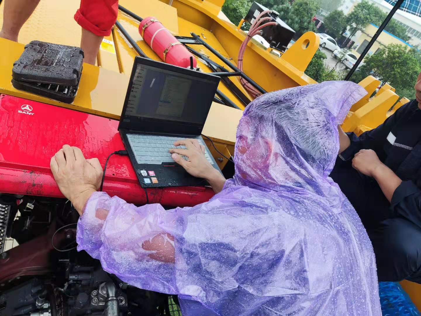 我公司人員到達后攜手另兩個公司的人員一起對三一起重機發(fā)動機進行了全面的檢查。